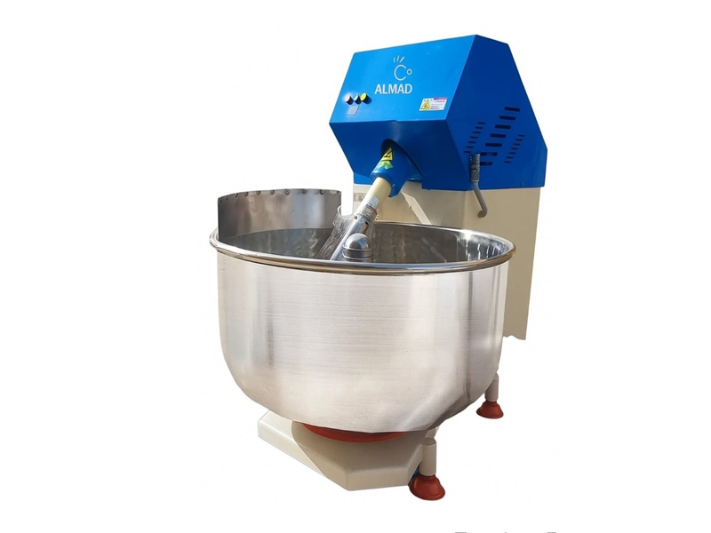 مجهزة بخزان مصنوع من الاستانلس ستيل سعة 60/ كغ عجين ،الخزان ( القادوس ) مزود بشفرات لتحريك العجين وتفريغه من الهواء مصنوعة من البولياميد الغذائى ،الخزان مزود بمحرك استطاعة نصف حصان لتحريك الشفرات